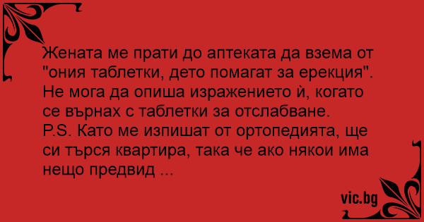 Жената ме прати до аптеката да взема от "ония таблетки, дето помагат за ерекция".