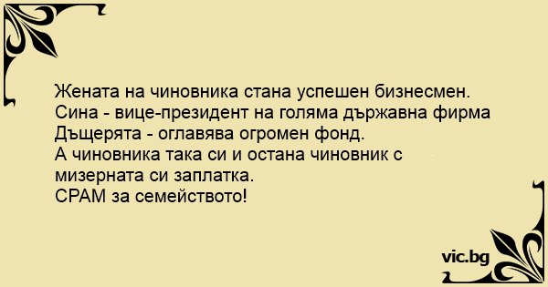 А чиновника така си и остана чиновник с мизерната си заплатка.