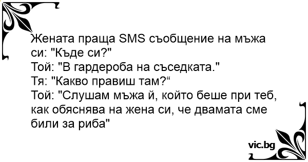Жената праща SMS съобщение на мъжа си: "Къде си?"