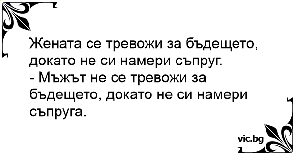 - Мъжът не се тревожи за бъдещето, докато не си намери съпруга.