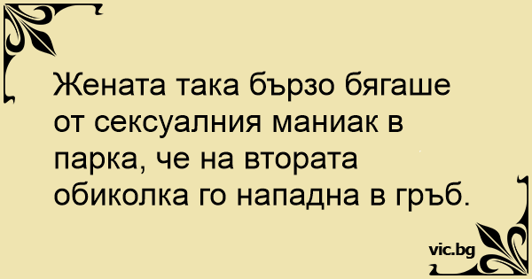 Жената така бързо бягаше от сексуалния маниак в парка, че на втората обиколка го нападна в гръб.