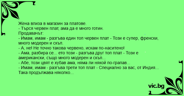 • Вицове от Facebook от нашата страница https://www.facebook.com/www.vic.bg