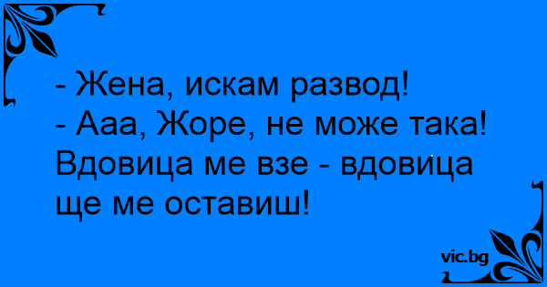- Ааа, Жоре, не може така! Вдовица ме взе - вдовица ще ме оставиш!