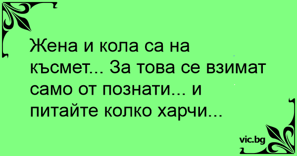 Жена и кола са на късмет... За това се взимат само от познати... и питайте колко харчи...