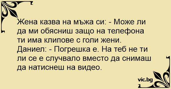 Жена казва на мъжа си: - Може ли да ми обясниш защо на телефона ти има клипове с голи жени.
