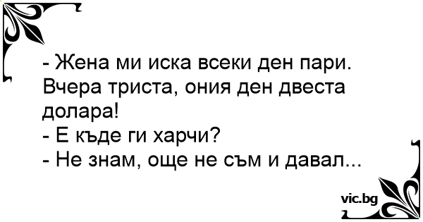 - Жена ми иска всеки ден пари. Вчера триста, ония ден двеста долара!