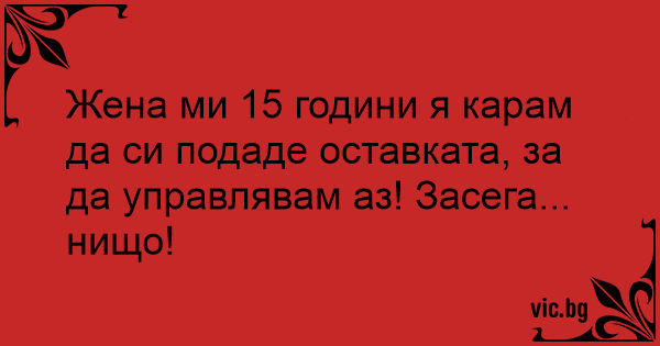 Жена ми 15 години я карам да си подаде оставката, за да управлявам аз! Засега... нищо!