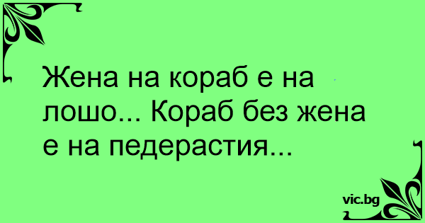 Жена на кораб е на лошо... Кораб без жена е на педерастия...