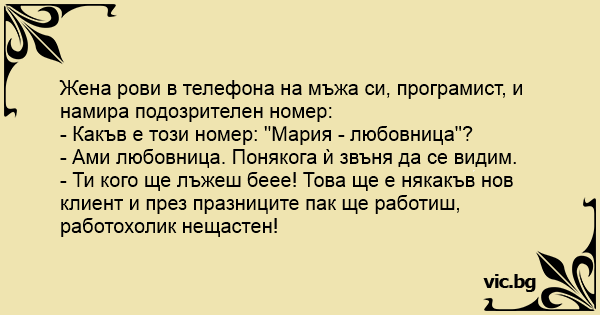 Жена рови в телефона на мъжа си, програмист, и намира подозрителен номер: