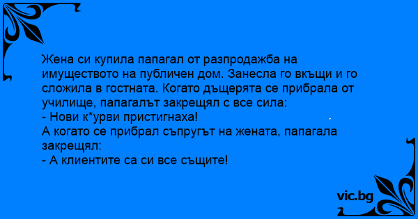 А когато се прибрал съпругът на жената, папагала закрещял: