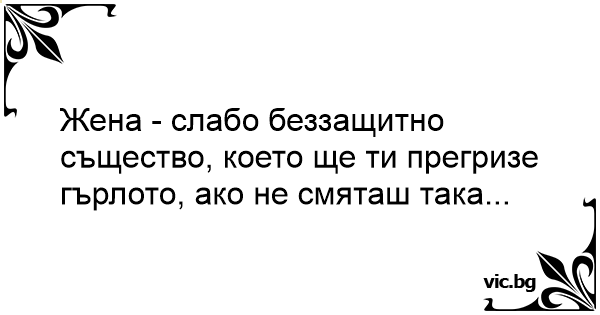 Жена - слабо беззащитно същество, което ще ти прегризе гърлото, ако не смяташ така...