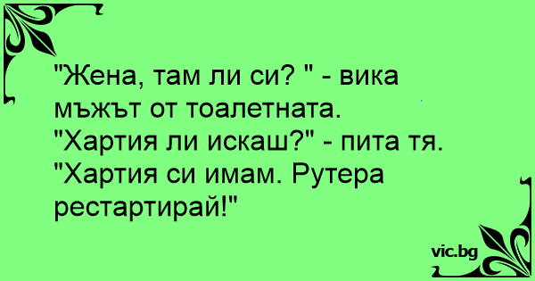 "Жена, там ли си? " - вика мъжът от тоалетната.