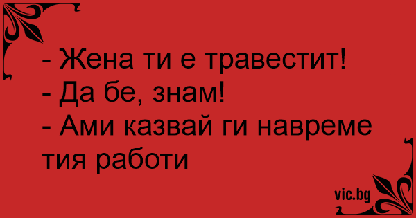 - Ало, Иване, бе ти знаеш ли, че жена ти е травестит?