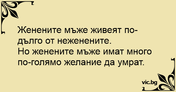 Според статистиката, женените мъже живеят по-дълго от ергените.