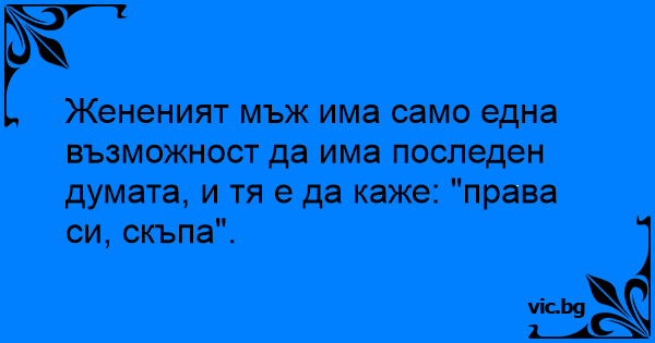 Жененият мъж има само една възможност да има последен думата, и тя е да каже: "права си, скъпа".