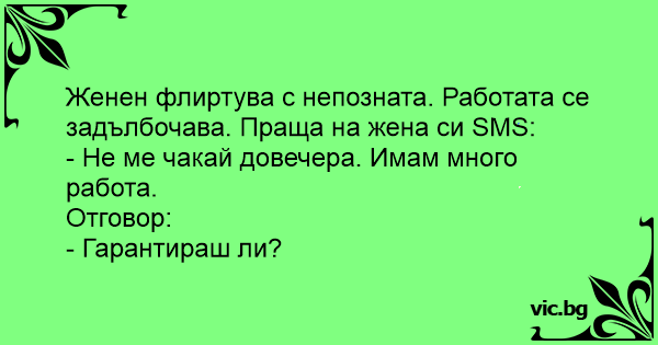 Женен флиртува с непозната. Работата се задълбочава. Праща на жена си SMS:
