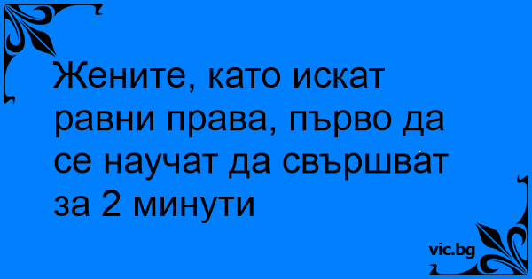 Жените, като искат равни права, първо да се научат да свършват за 2 минути