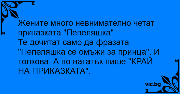 Те дочитат само да фразата "Пепеляшка се омъжи за принца". И толкова. А по нататък пише "КРАЙ НА ПРИКАЗКАТА".