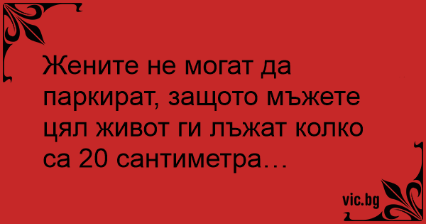 Жените не могат да паркират, защото мъжете цял живот ги лъжат колко са 20 сантиметра…