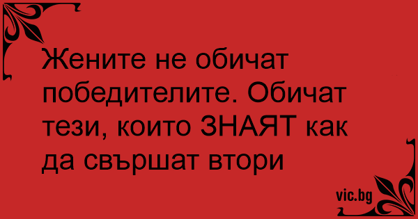 Жените не обичат победителите. Обичат тези, които ЗНАЯТ как да свършат втори