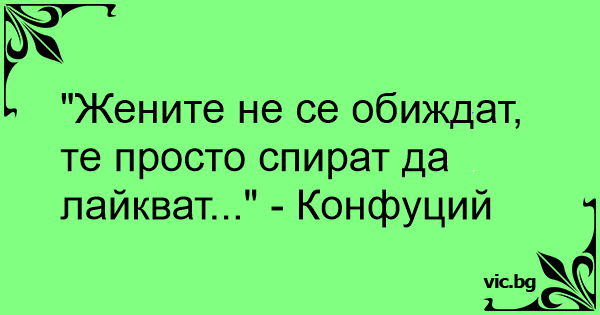 "Жените не се обиждат, те просто спират да лайкват..." - Конфуций