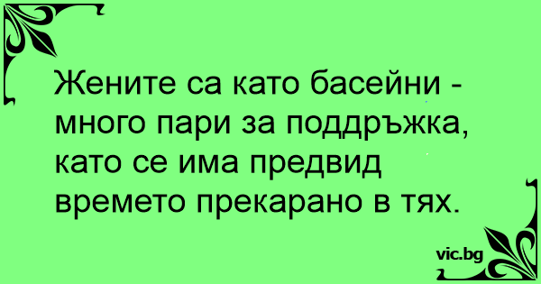 Жените са като басейни - много пари за поддръжка, като се има предвид времето прекарано в тях.