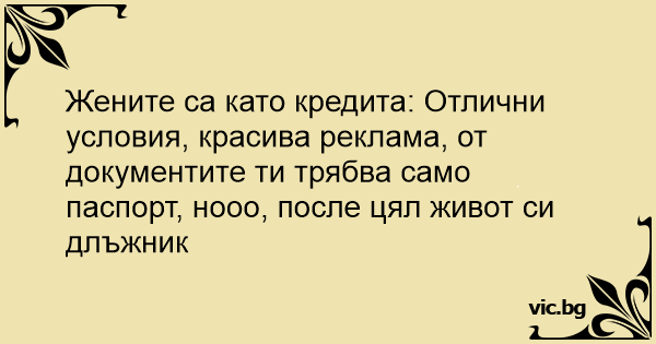 Жените са като кредита: Отлични условия, красива реклама, от документите ти трябва само паспорт, нооо, после цял живот си длъжник