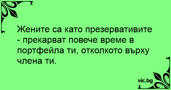 Жените са като пpeзepbatиbиte - прекарват повече време в портфейла ти, отколкото върху члeнa ти.