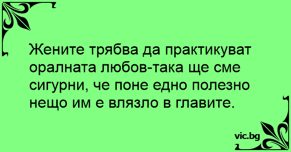 Жените трябва да практикуват оралната любов-така ще сме сигурни, че поне едно полезно нещо им е влязло в главите.