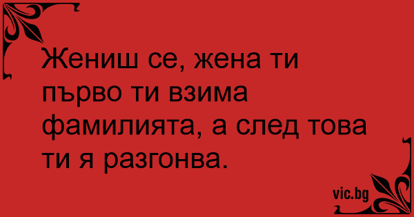 Жениш се, жена ти първо ти взима фамилията, а след това ти я разгонва.