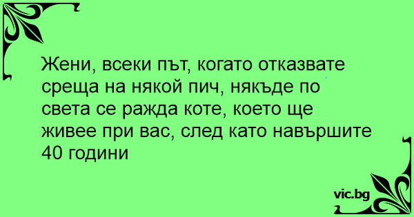 Жени, всеки път, когато отказвате среща на някой пич, някъде по света се ражда коте, което ще живее при вас, след като навършите 40 години