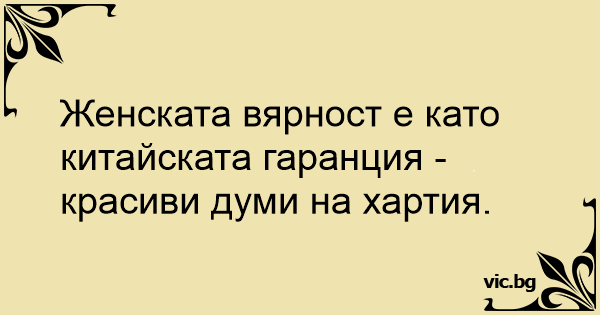 Женската вярност е като китайската гаранция - красиви думи на хартия.