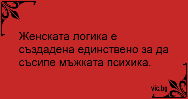 Женската логика е създадена единствено за да съсипе мъжката психика.