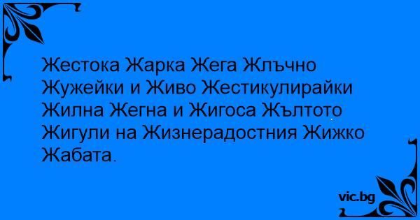 Жестока Жарка Жега Жлъчно Жужейки и Живо Жестикулирайки Жилна Жегна и Жигоса Жълтото Жигули на Жизнерадостния Жижко Жабата.