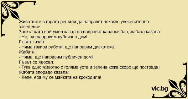 • Вицове от Facebook от нашата страница https://www.facebook.com/www.vic.bg