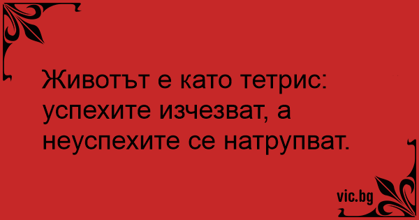 Животът е като тетрис: успехите изчезват, а неуспехите се натрупват.
