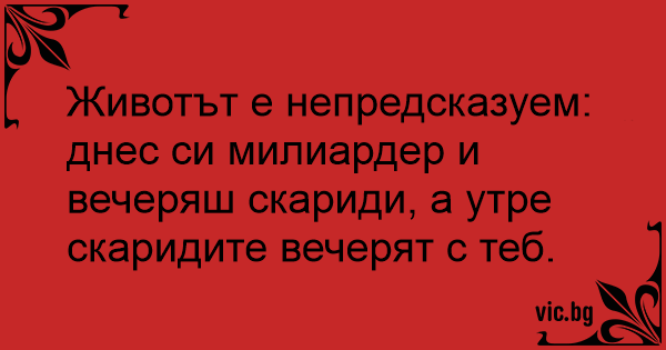 Животът е непредсказуем: днес си милиардер и вечеряш скариди, а утре скаридите вечерят с теб.