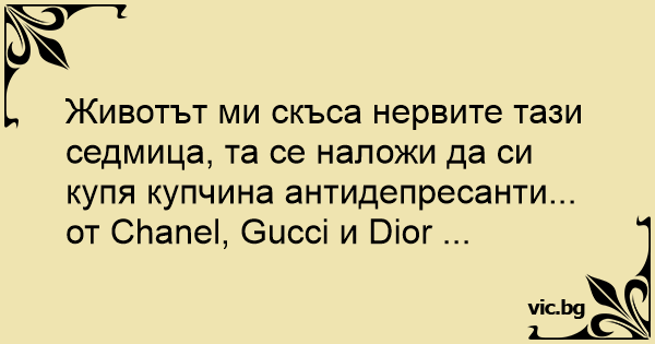 Животът ми скъса нервите тази седмица, та се наложи да си купя купчина антидепресанти... от Chanel, Gucci и Dior ...