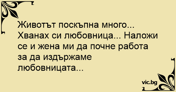 Хванах си любовница... Наложи се и жена ми да почне работа за да издържаме любовницата...