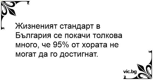Жизненият стандарт в България се покачи толкова много, че 95% от хората не могат да го достигнат.