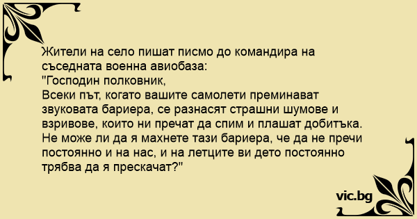 Жители на село пишат писмо до командира на съседната военна авиобаза: