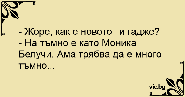 - На тъмно е като Моника Белучи. Ама трябва да е много тъмно...
