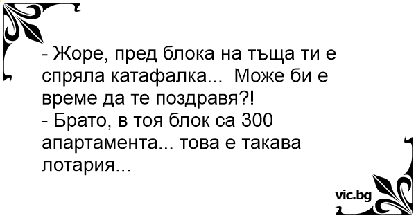 - Жоре, пред блока на тъща ти е спряла катафалка... Може би е време да те поздравя?!