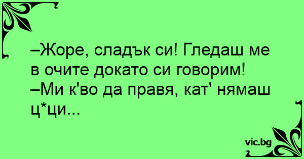 –Жоре, сладък си! Гледаш ме в очите докато си говорим!