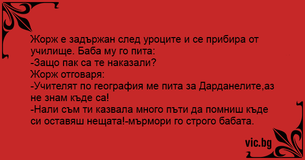 -Учителят по география ме пита за Дарданелите,аз не знам къде са!