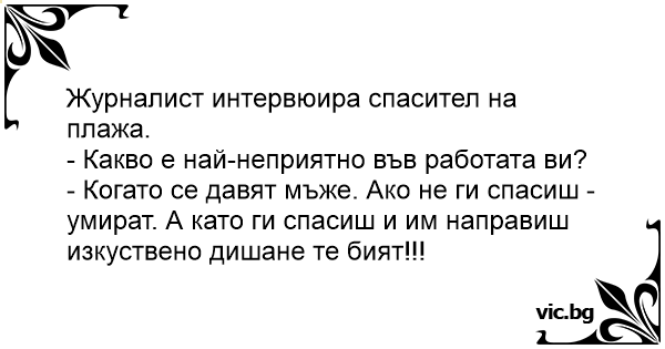- Когато се давят мъже. Ако не ги спасиш - умират. А като ги спасиш и им направиш изкуствено дишане те бият!!!