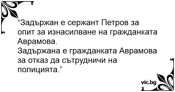 “Задържан е сержант Петров за опит за изнacилbaнe на гражданката Аврамова.