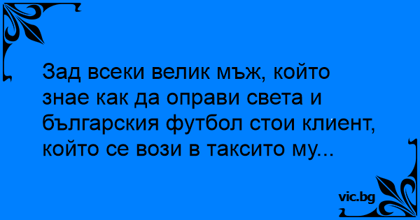 Зад всеки велик мъж, който знае как да оправи света и българския футбол стои клиент, който се вози в таксито му...