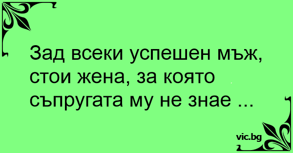 Зад всеки успешен мъж, стои жена, за която съпругата му не знае ...