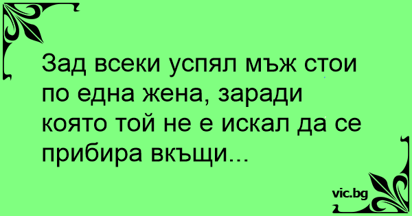Зад всеки успял мъж стои по една жена, заради която той не е искал да се прибира вкъщи...